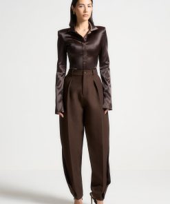 Manière De Voir Women’s Marie – Twist Sleeve Tailored Blazer With Belt – Brown | Brown