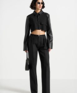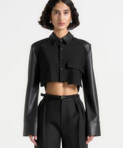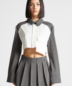 Manière De Voir Women’s Bernadette – Pinstripe Contrast Cropped Shirt – Grey | Grey & White