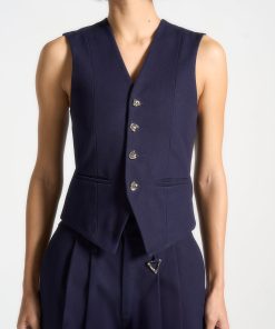 Manière De Voir Women’s Christine – Gabardine Cinch Waistcoat – Indigo | Indigo