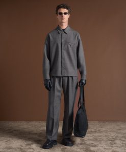 Manière De Voir Men’s Louis – Relaxed Fit Textured Belted Tailored Trousers – Stone | Stone