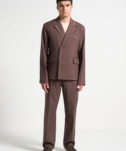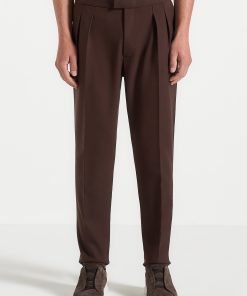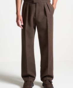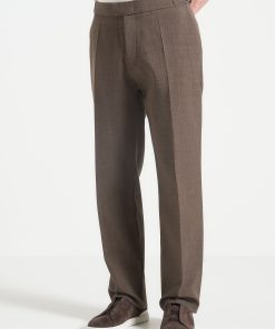 Manière De Voir Men’s Pierre – Relaxed Fit Melange Pleated Tailored Trousers – Brown | Brown