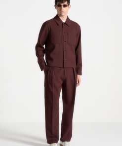 Manière De Voir Men’s Dorian – Relaxed Fit Wool Blend Herringbone Pleated Tailored Trousers | Brown