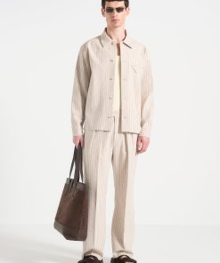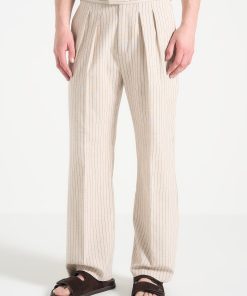 Manière De Voir Men’s Pierre – Relaxed Fit Pinstripe Pleated Tailored Trousers – Beige | Beige