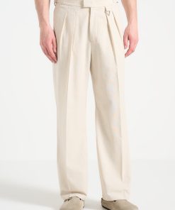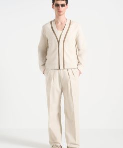 Manière De Voir Men’s Pierre – Relaxed Fit Linen Pleated Tailored Trousers – Natural | Natural