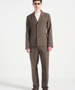 Manière De Voir Men’s Dorian – Relaxed Fit Hatched Pleated Tailored Trousers – Khaki | Khaki