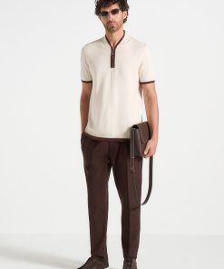 Manière De Voir Men’s Joseph – Regular Fit Hatched Tailored Trousers – Light Brown | Light Brown
