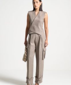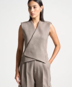 Manière De Voir Women’s Laurence – Textured Tailored Wrap Waistcoat – Taupe | Taupe