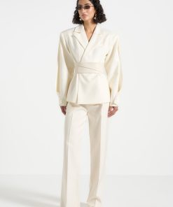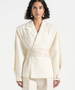 Manière De Voir Women’s Marie – Twist Sleeve Tailored Blazer With Belt – Cream | Cream