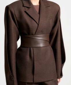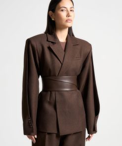 Manière De Voir Women’s Marie – Twist Sleeve Tailored Blazer With Belt – Brown | Brown