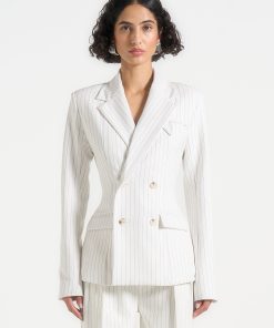 Manière De Voir Women’s Maia – Pinstripe Double Breasted Blazer – White | Off White