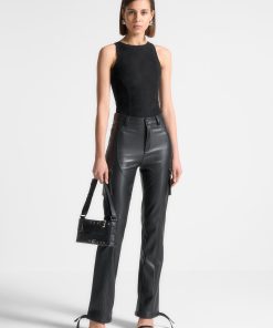 Manière De Voir Women’s Core Collection Adele – Suede Racer Neck Bodysuit – Black | Black