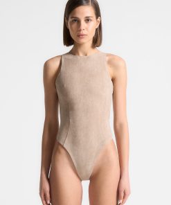 Manière De Voir Women’s Core Collection Adele – Suede Racer Neck Bodysuit – Taupe | Taupe
