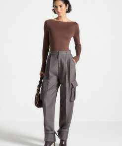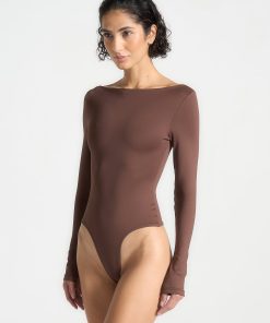 Manière De Voir Women’s Core Collection Inès – Double Layer Racer Neck Bodysuit – Brown | Brown