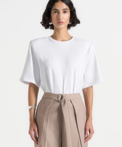 Manière De Voir Women’s Core Collection Mia – Wide Shoulder Bodysuit T-shirt – White | White