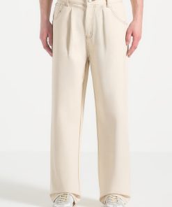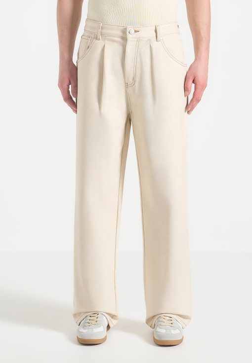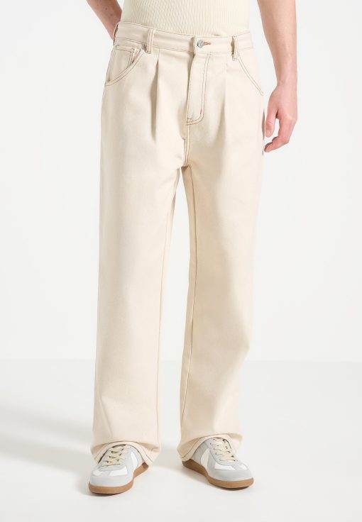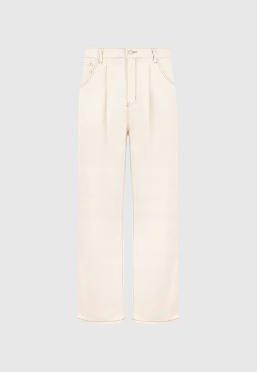 A statement in volume and structure, the Pleated Jeans introduce formal elements into a classic workwear fabric. Twin front pleats shape the upper block for added depth, while a tapered leg and defined crease lines maintain a clean, engineered finish. Built from heavyweight high-quality denim, they combine tailored control with utilitarian roots.