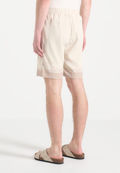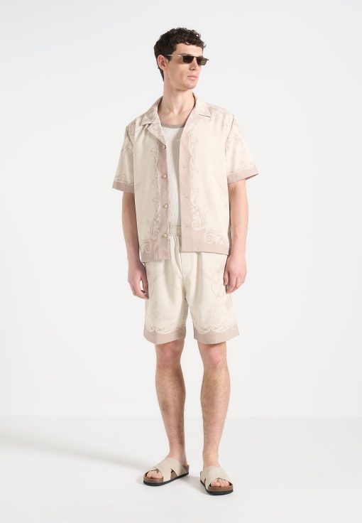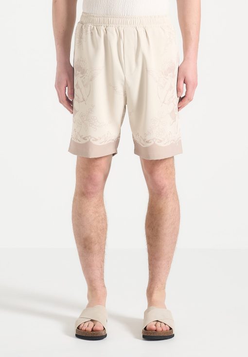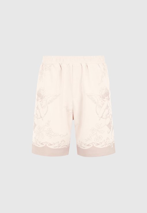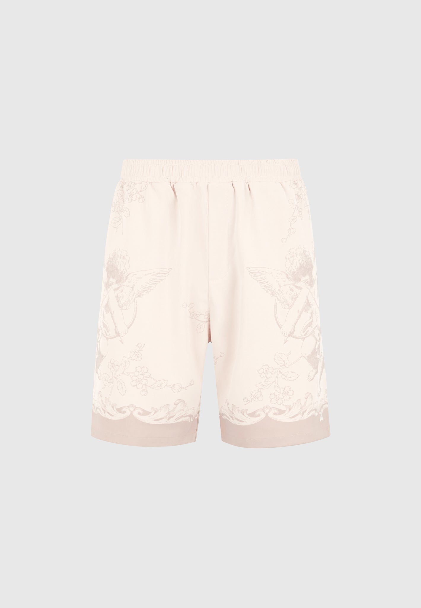 Baroque elegance reimagined for the everyday, the Baroque Shorts channel classical artistry into a relaxed, contemporary cut. Detailed with tonal cherub illustrations and framed with contrast panelling at the hem, these shorts offer a refined visual language wrapped in a fluid, lightweight fabrication.