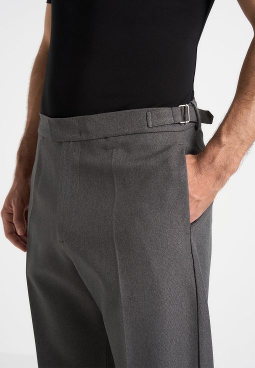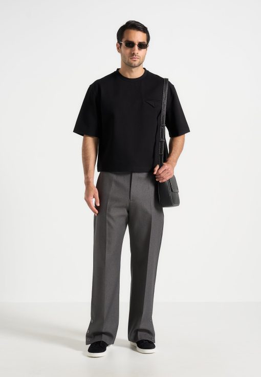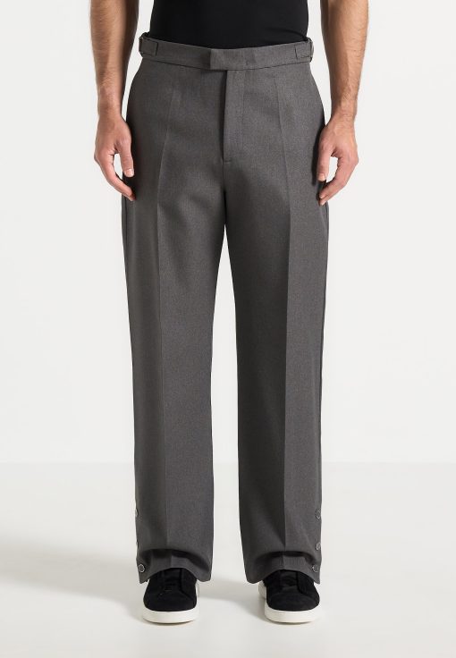 For a bold take on tailoring, these trousers feature a classic silhouette with pleat detailing for refined volume. Designed with streamlined pockets for a clean and structured look. Finished with popper cuffs for adjustable styling options.
