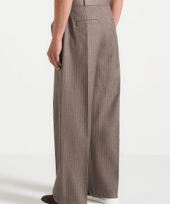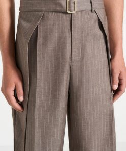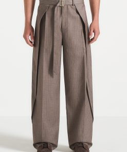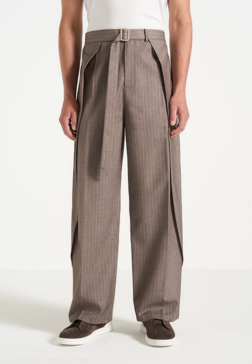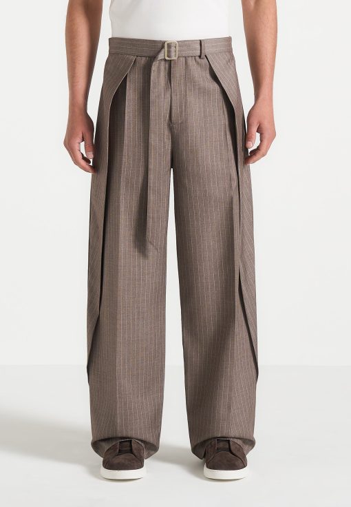 Designed with a relaxed fit, these wrap leg tailored trousers perfectly balance comfort and style. The wrap leg pleat adds structured detail, whilst the pinstripe pattern delivers subtle visual interest. An adjustable belt with a gold buckle ensures a personalised fit, and two faux welt back pockets complete the look with a clean, streamlined silhouette.