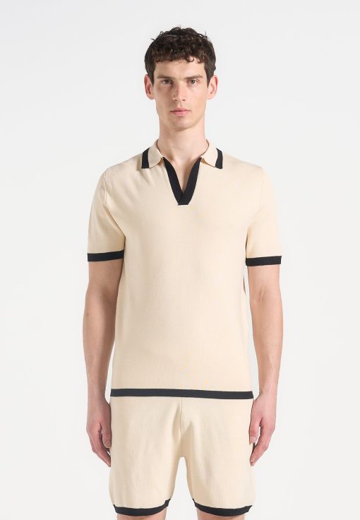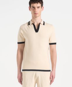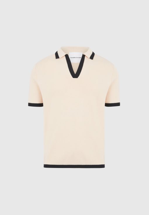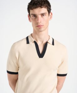 Manière De Voir Men’s Best Sellers Lambert – Contrast Detail Knit Polo Shirt – Cream | Cream