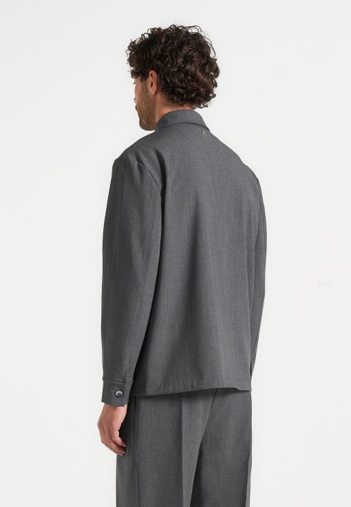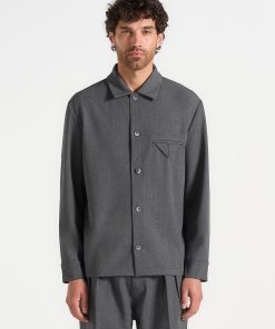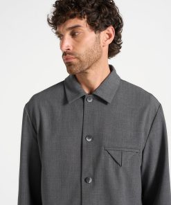 Designed with a relaxed silhouette for effortless versatility between formal and casual looks. Our hatched tailored overshirt delivers a classic collar frame for a refined neckline, while the front angular welt pocket adds a modern edge. Finished with tapered cuffs to define structure and shape, this piece balances comfort with tailored detail.
