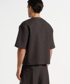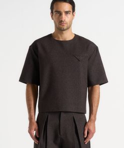 Crafted from structured hatched fabric, the boxy cropped t-shirt brings texture and modernity to a timeless silhouette. Designed with boxy proportions for a clean, relaxed fit, it features a classic crew neckline for a versatile frame. The front angular welt pockets add an elevated detailing.