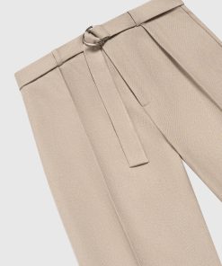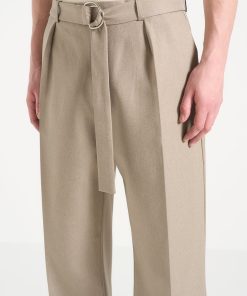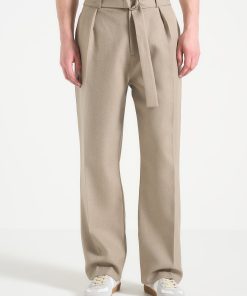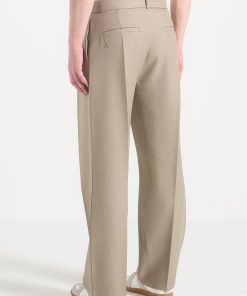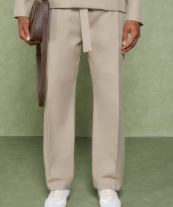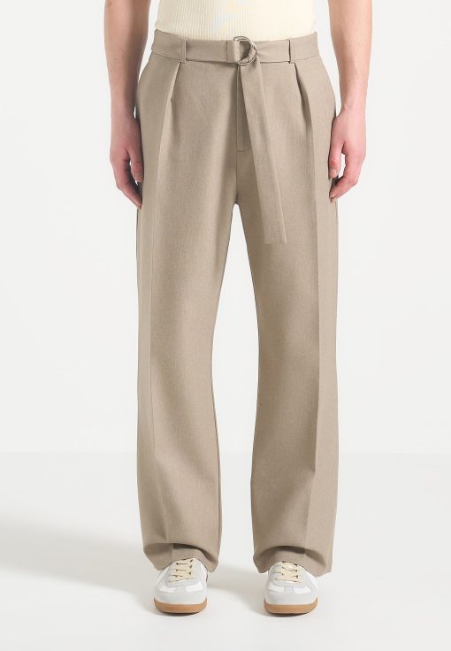 Elevate your professional attire with the Relaxed Fit Belted Tailored Trousers in Beige. The pressed crease detail adds a refined touch, while the relaxed fit and neutral tone combine comfort and versatility, making the trousers perfect for any occasion.