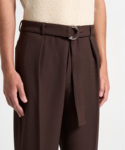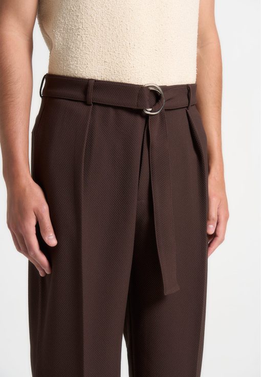 Enhance your wardrobe with our Textured Belted Tailored Trousers in Brown. Designed with a relaxed fit and a pleat to crease detail, these trousers seamlessly blend comfort and style. Perfect for any occasion, these trousers are a versatile essential to any wardrobe.