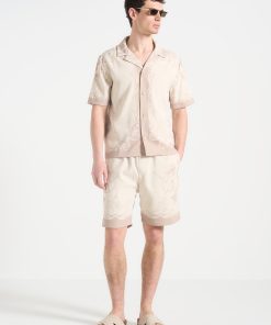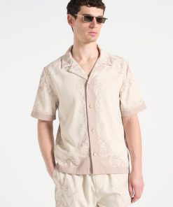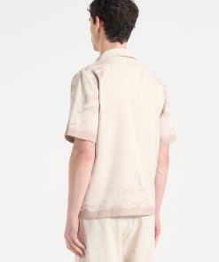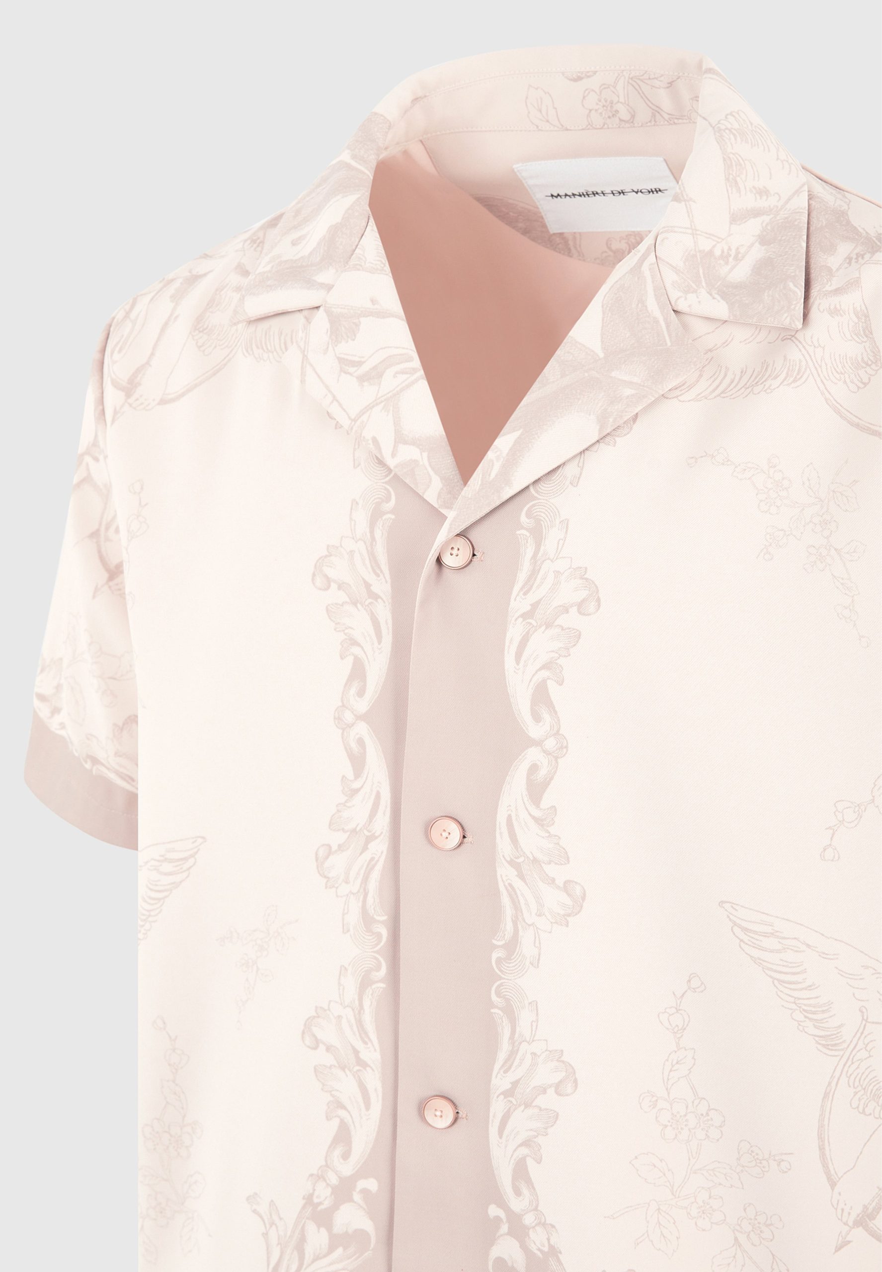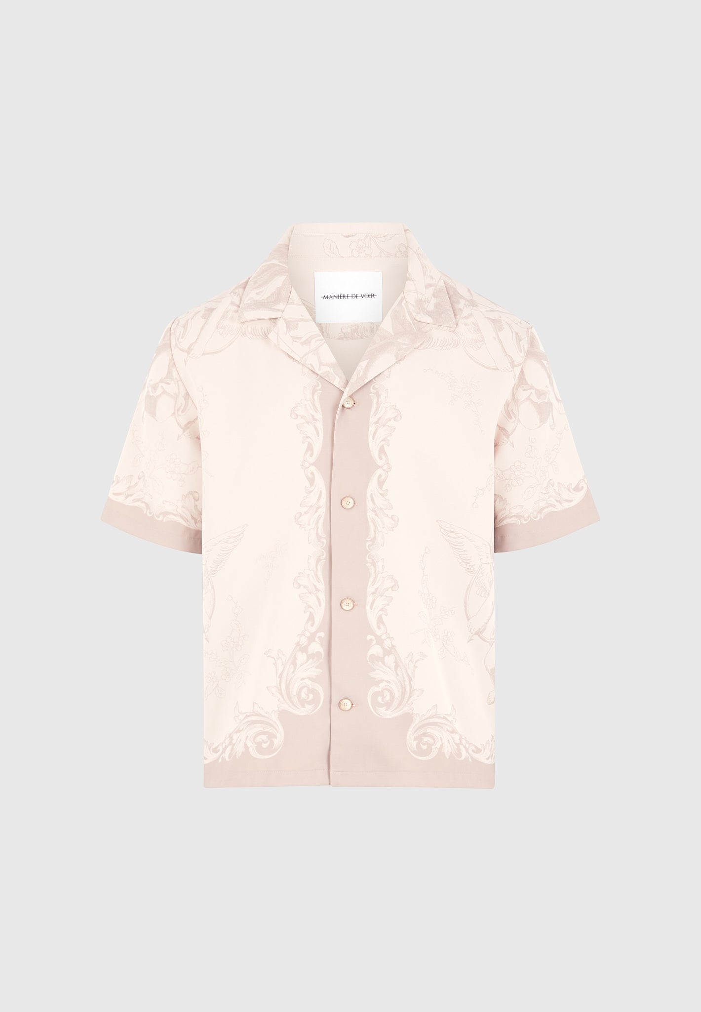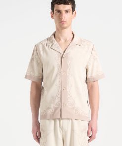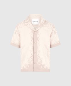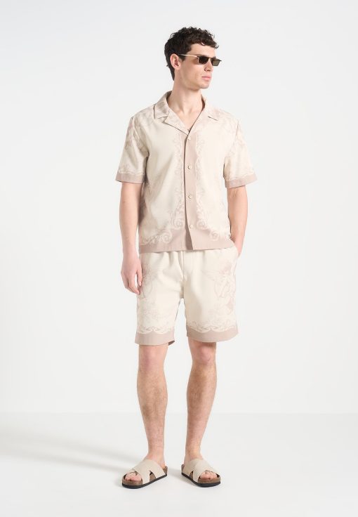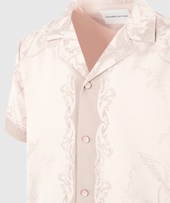 Art meets escapism in the Signature Baroque Resort Shirt, where ornamental motifs and classical detailing define a refined vacation silhouette. Featuring an all-over baroque illustration and contrast paneling through the placket and hem, the shirt blends grand visuals with laid-back tailoring. The relaxed fit and open revere collar make it ideal for elevated summer styling.