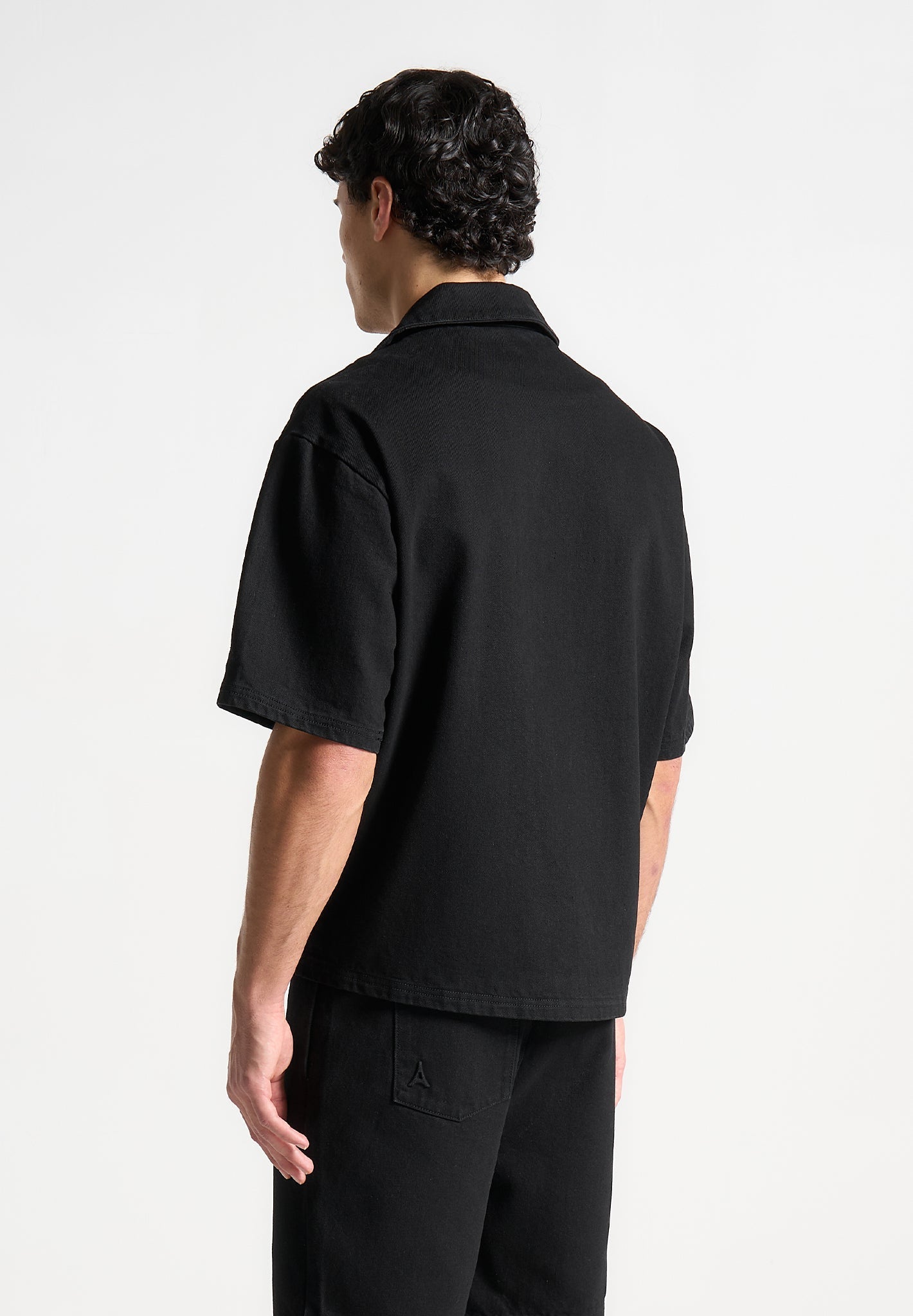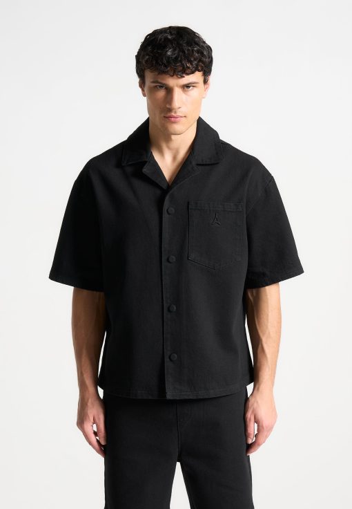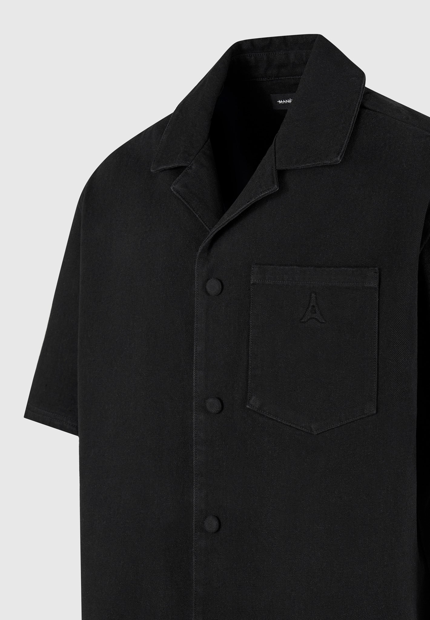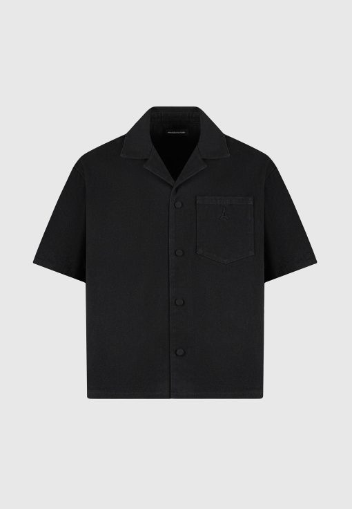 The Boxy Denim Revere Shirt is expertly crafted from a structured denim material, ensuring a loose yet stylish fit. Its unique Revere collar and subtle fabric-covered poppers add a refined detail to the design, while the embossed Eiffel logo and front pocket offer a blend of functionality and style.