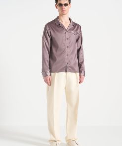 Manière De Voir Men’s Constant – Satin Overshirt – Taupe | Taupe
