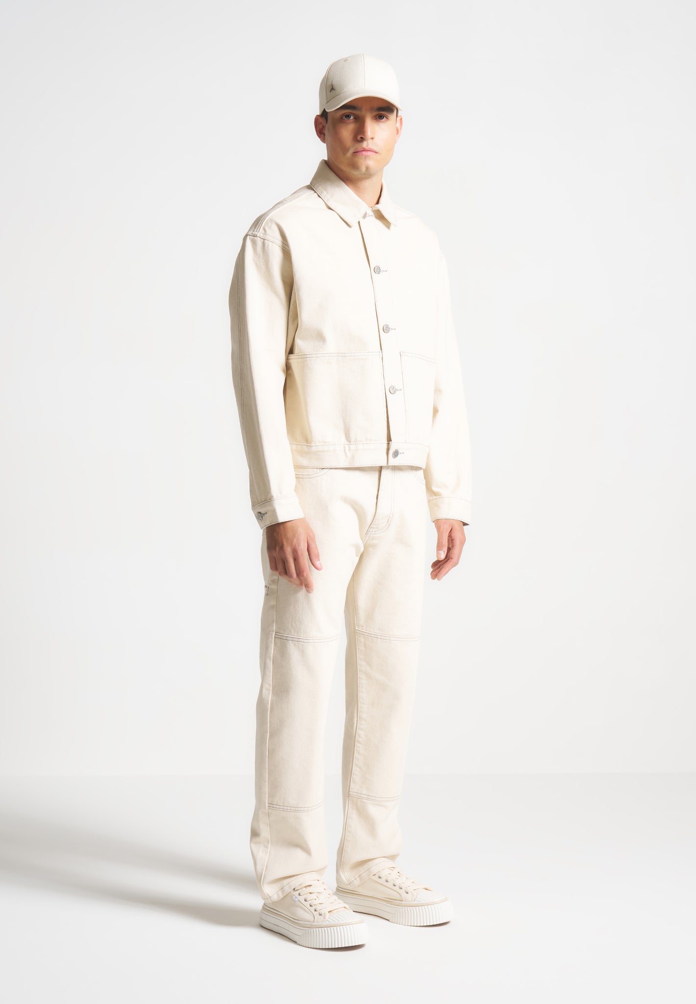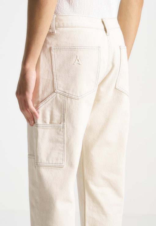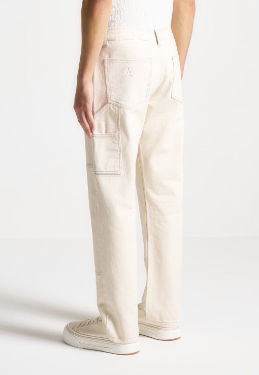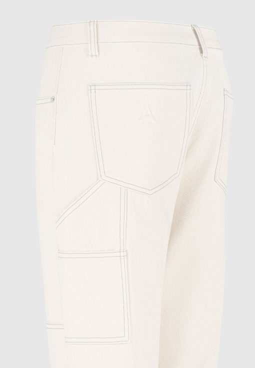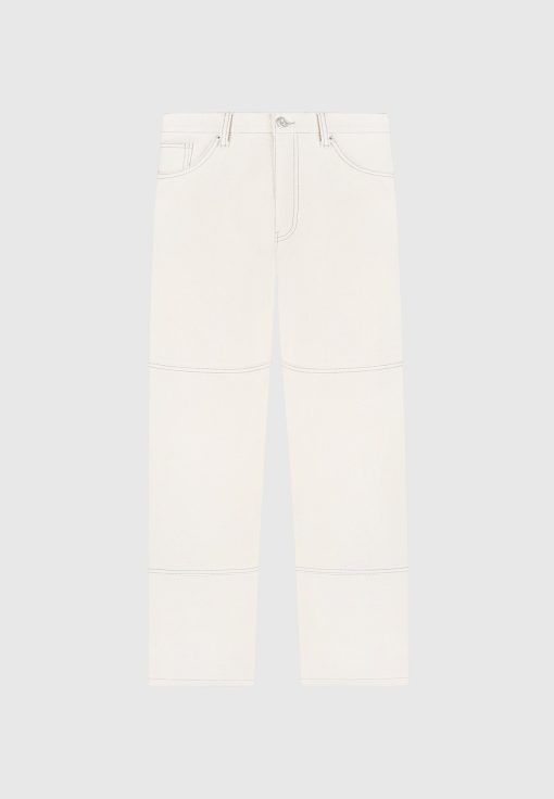 Introducing our Contrast Stitch Carpenter Jean in Cream. Boasting a relaxed fit with refined contrast stitching, these Jeans effortlessly blend comfort with style. The functional pockets ensure practicality while the embossed Eiffel detailing on the back pocket adds a unique touch. Crafted with premium quality fabrics, these Jeans offer durability and breathability for all-day wear.