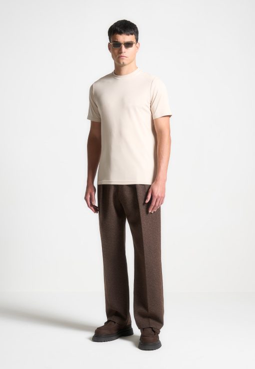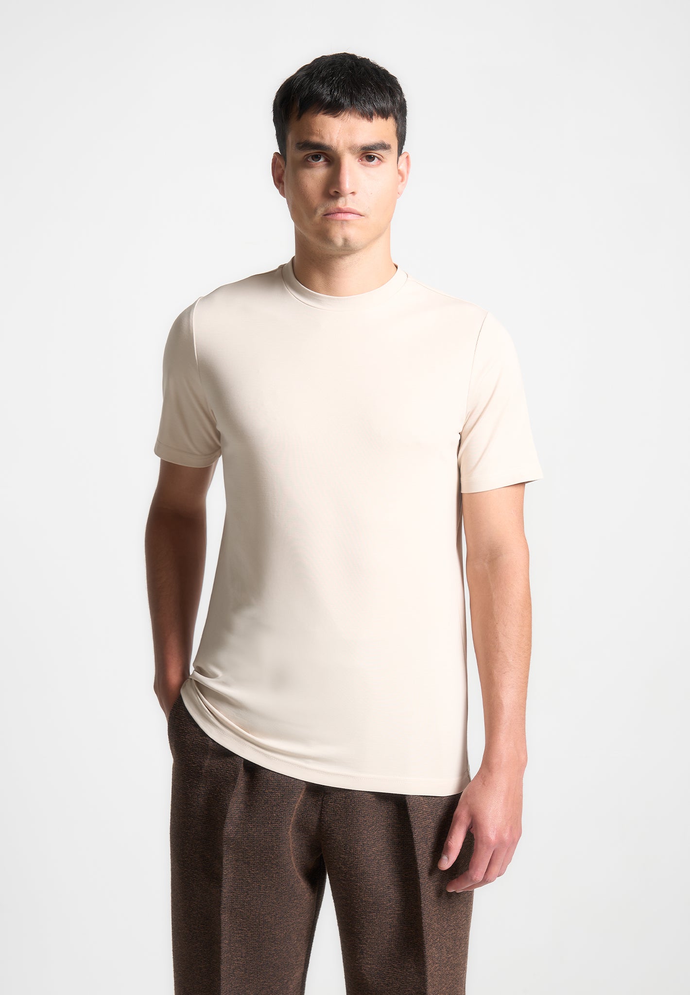 Elevate your wardrobe effortlessly with the Éternel Fitted Luxe T-Shirt in Cream. Embodying a blend of comfort and contemporary style, this classic piece features a fitted silhouette that enhances your physique. A versatile and timeless addition to your collection, it serves as an essential staple to compliment any ensemble.