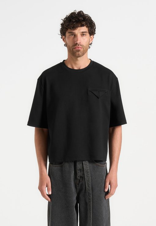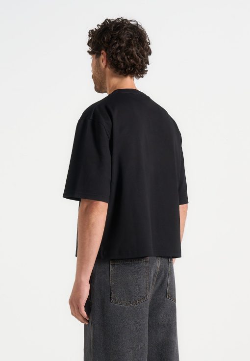 Introducing the Éternel Boxy Cropped T-Shirt in Black. Designed with a boxy, cropped silhouette, this T-Shirt offers a modern twist on a classic style. Perfect for any occasion, it provides comfort and versatility to elevate your wardrobe.