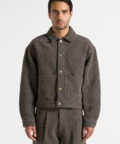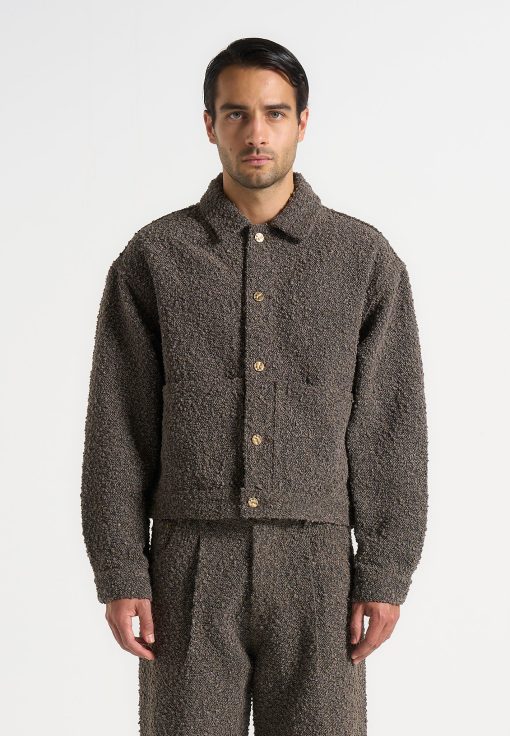 Manière De Voir Men’s Damien – Boucle Jacket With Back Pleat – Brown | Brown