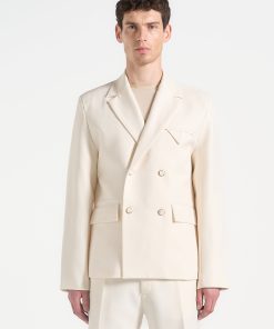 - Peak Lapels and Padded Shoulders for Elevated Shape
