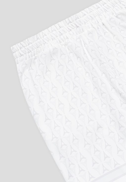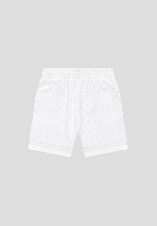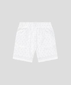 Elevate your resort look with our Eiffel Monogram Shorts in White. Made with high quality fabrics, the unique Eiffel Monogram design and elasticated waistband offer both comfort and style. Perfectly paired with our Eiffel Monogram Resort Shirt for a polished and cohesive outfit.
