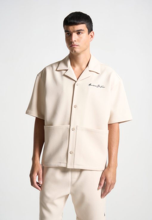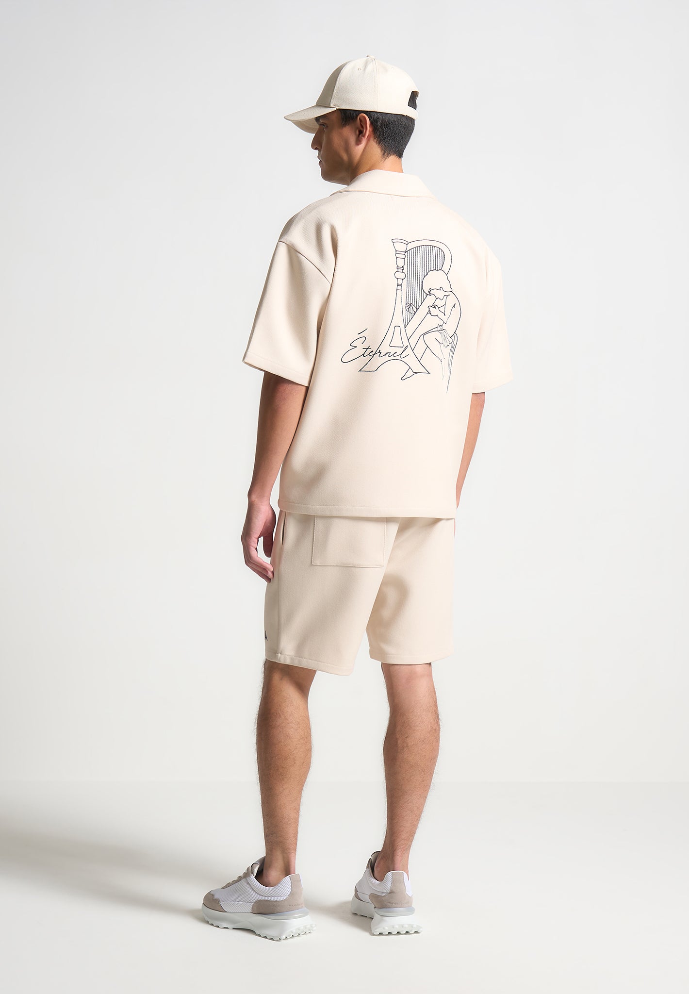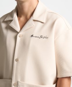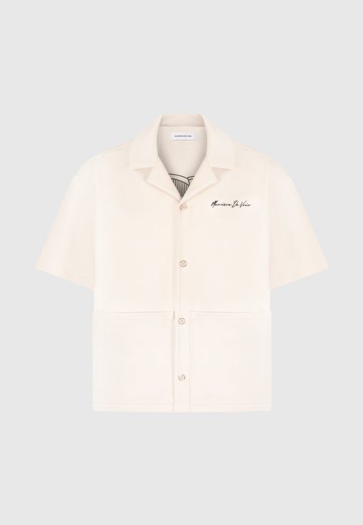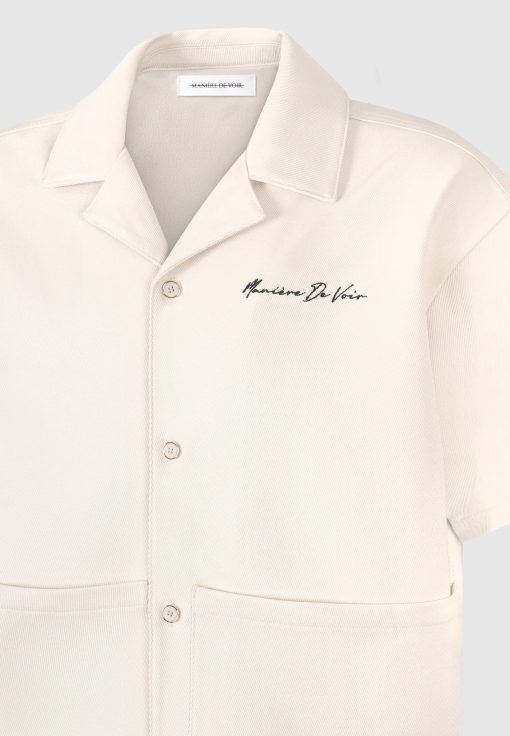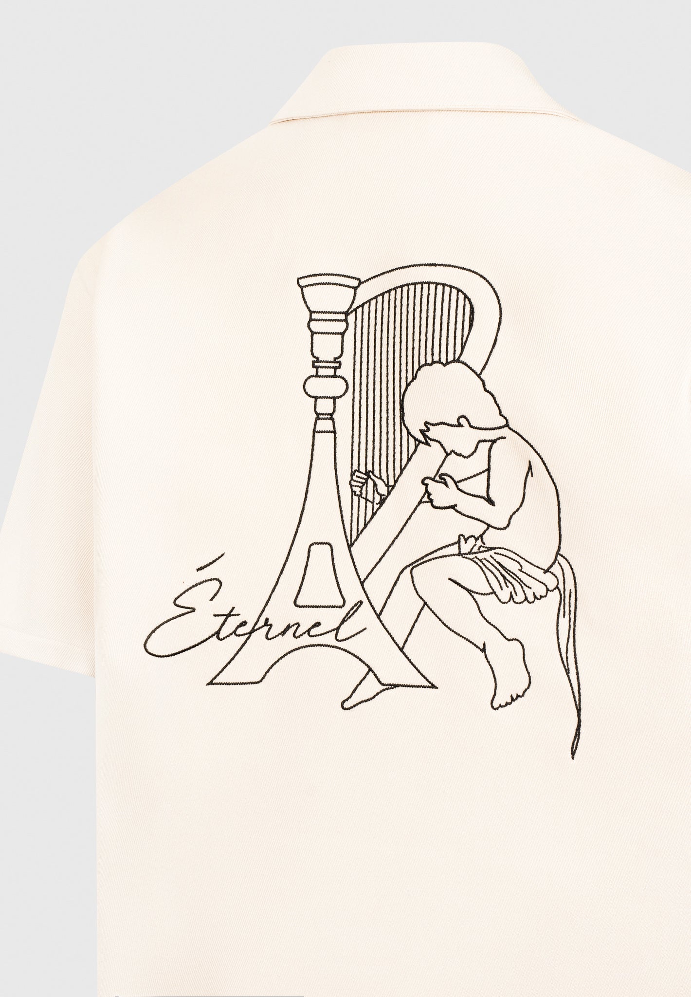 Crafted with a textured fabric, the Eiffel Twill Shirt embodies a perfect fusion of style and comfort. Its wide front pockets, intricate embroidered details, and refined revere collar elevate its allure, while the short sleeve silhouette and boxy fit offer a relaxed yet polished look.