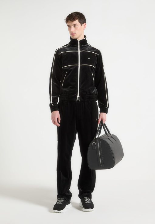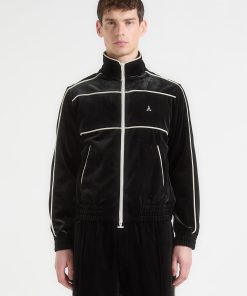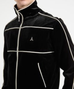 The Eiffel Velour Track Jacket blends refined style with modern appeal, crafted from plush velour for a soft, velvety feel. Contrast piping adds a sophisticated edge, while ribbed hems provide a tailored fit, delivering elevated comfort with contemporary flair.