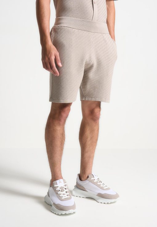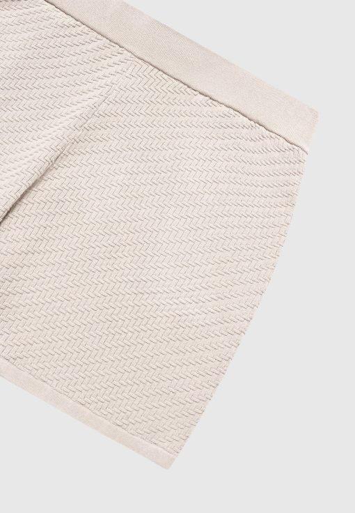 Experience unparalleled style and comfort with our Taupe Herringbone Knit Shorts, expertly crafted from high-quality fabrics for a luxurious feel. Pair them effortlessly with our matching Herringbone Knit Revere Shirt for a coordinated ensemble, perfect for any occasion this summer.
