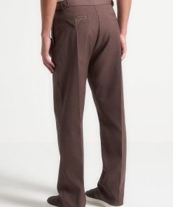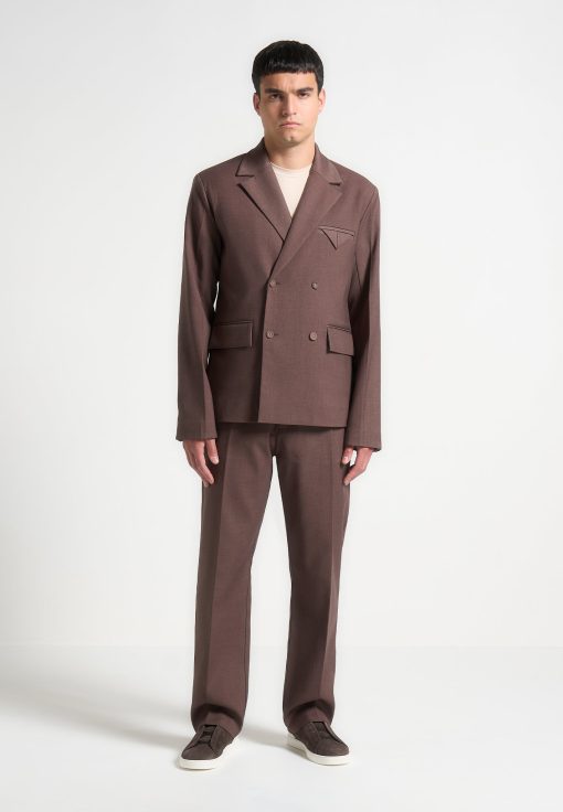 Elevate your wardrobe with the Regular Fit Twill Pleated Tailored Trousers in Brown. Designed for a classic and comfortable fit, these Trousers feature a unique twill finish that effortlessly elevates any formal or smart-casual look. Pair with the Double Breasted Twill Suit Jacket in Brown for a seamless formal ensemble.