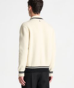 The Classic Combed Cotton Knit Cardigan in Cream redefines classic knitwear with a contemporary edge. Crafted with a long sleeve silhouette made from luxuriously soft combed cotton, this Cardigan ensures effortless comfort. Perfect for layering, this Cardigan is a versatile essential for elevating your seasonal wardrobe.