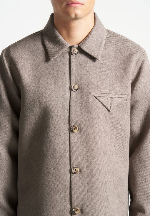 Introducing the Textured Tailored Long Sleeve Shirt in Taupe, crafted from premium fabrics for a blend of comfort and style. Designed with a regular fit, this Shirt features a classic collar, button fastening, and a distinctive triangle money welt pocket for a unique touch. With a long sleeve silhouette and refined tapered cuffs, this versatile Shirt is perfect for any smart casual or formal occasion.
