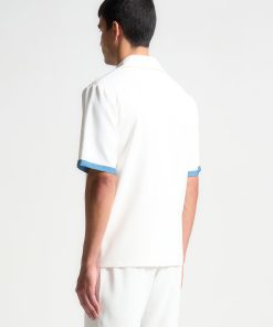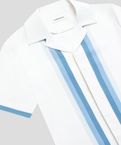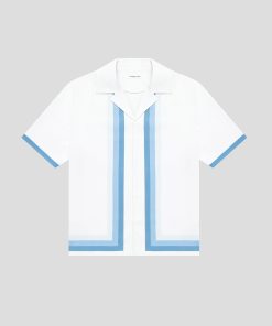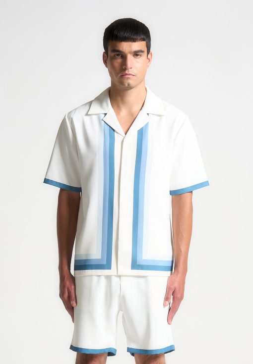 Experience effortless style with our Ombré Border Revere Shirt. Crafted from luxurious satin finish fabric, this relaxed fit shirt boasts a captivating ombré border stripe detail, combined with a modern yet casual collar. Elevate your wardrobe with this versatile piece, guaranteed to enhance your everyday look this season.