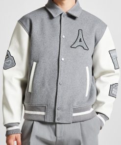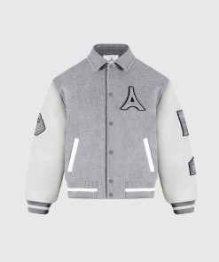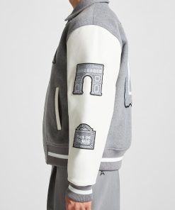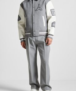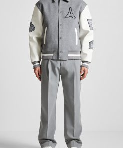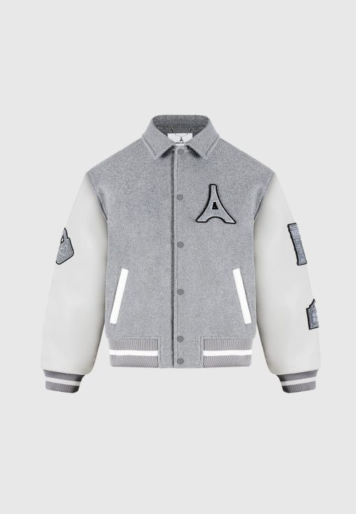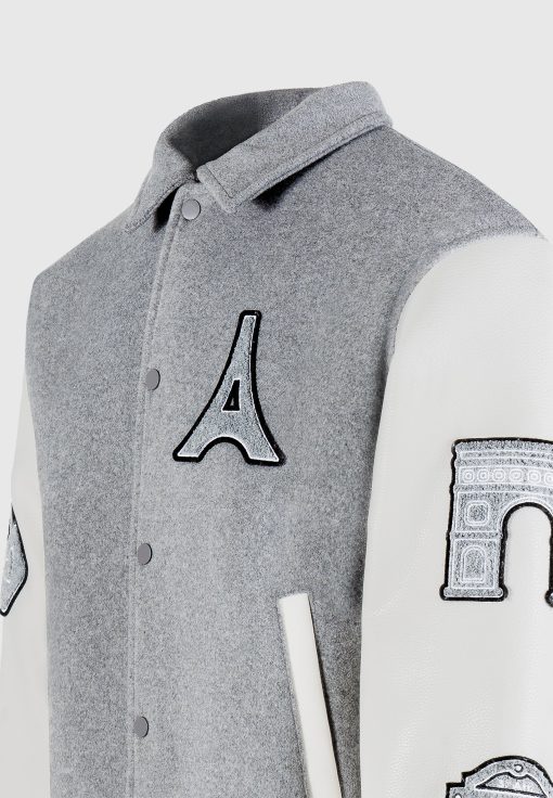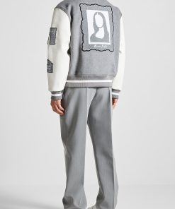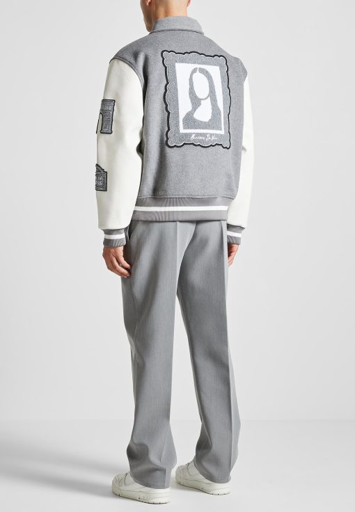 Bring classic style to your wardrobe with this Mona Lisa Wool Blend Varsity Jacket in Grey. Featuring French inspireddesigns and a soft wool blend base fabric, this jacket is perfect for any occasion.