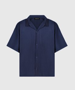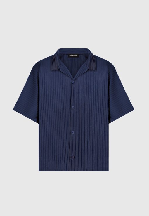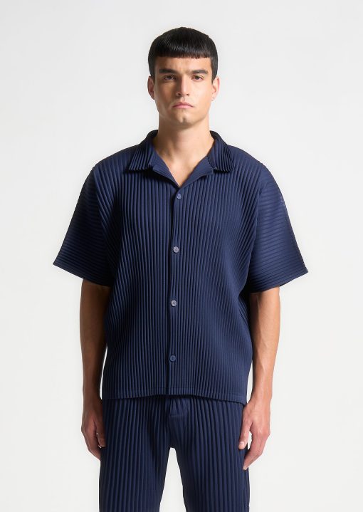 Introducing our sleek Pleated Shirt in classic Navy. Made with a breathable material for ultimate comfort, this shirt is perfect for any occasion. Its timeless short sleeve silhouette pairs perfectly with our Pleated Trousers or Shorts in Navy for a complete look.