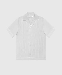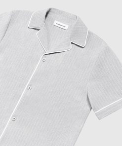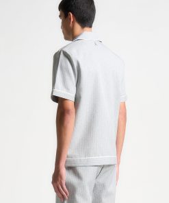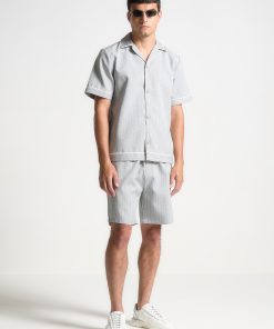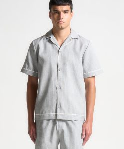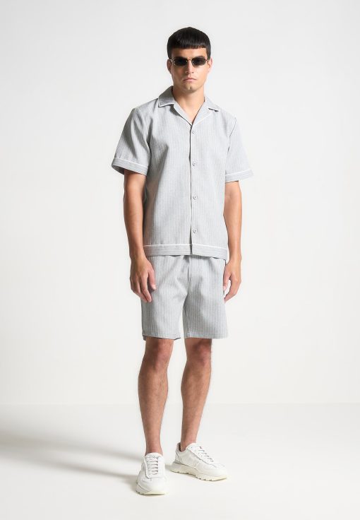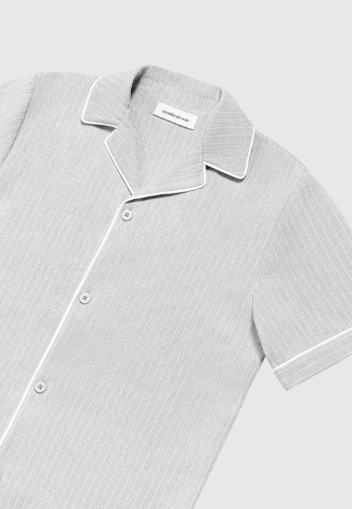 This Grey Pinstripe Revere Shirt is a must-have addition to your wardrobe. With classic pinstripe detailing and a timeless revere collar, this shirt brings style to any look. Pair it with our Pinstripe Shorts for an effortlessly put-together outfit.