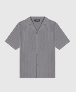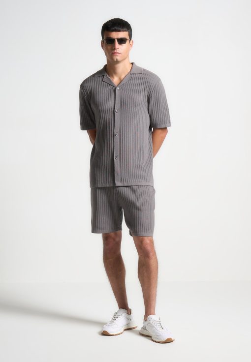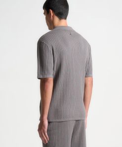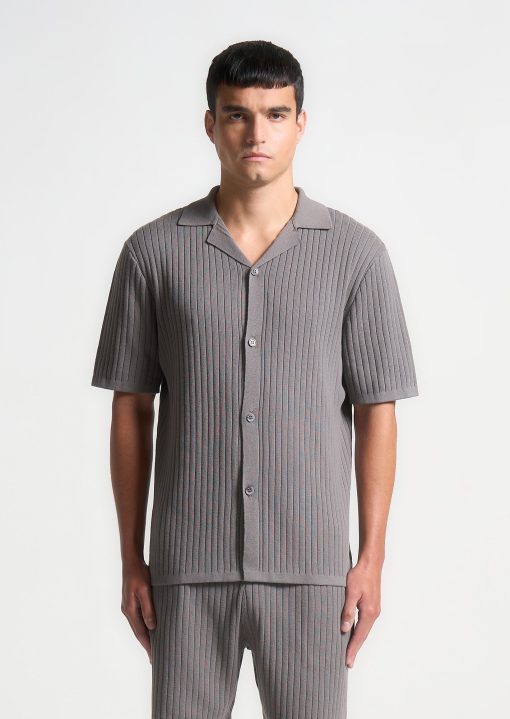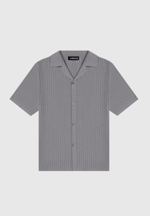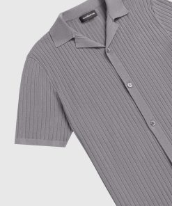 Crafted from a soft and durable knit material, the Ribbed Knit Revere Shirt offers comfort and style. The ribbed fabric adds texture while the short sleeve silhouette and revere collar create a classic yet modern look. Perfect for any occasion, this shirt is a must-have for your wardrobe.