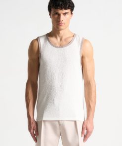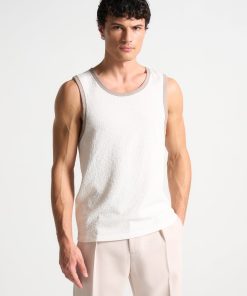Manière De Voir Men’s Seersucker Vest – White/beige | White & Beige