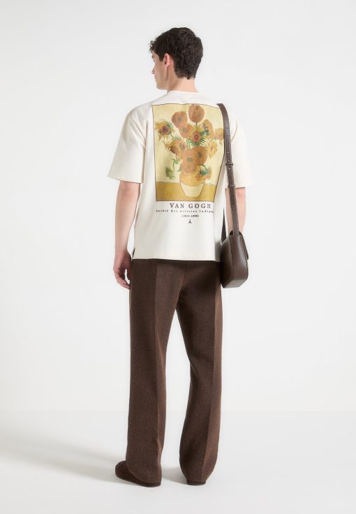 The Van Gogh Sunflowers T-Shirt is a tribute to artistic mastery, featuring a striking graphic print of the artist’s iconic masterpiece on the back. Made from high-quality cotton, it offers a breathable, relaxed fit. The understated cream tone highlights the bold design, ideal for an elevated everyday look.