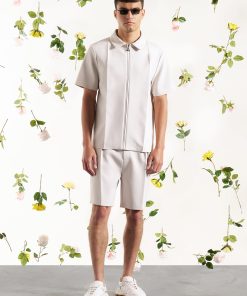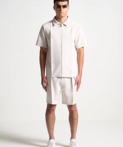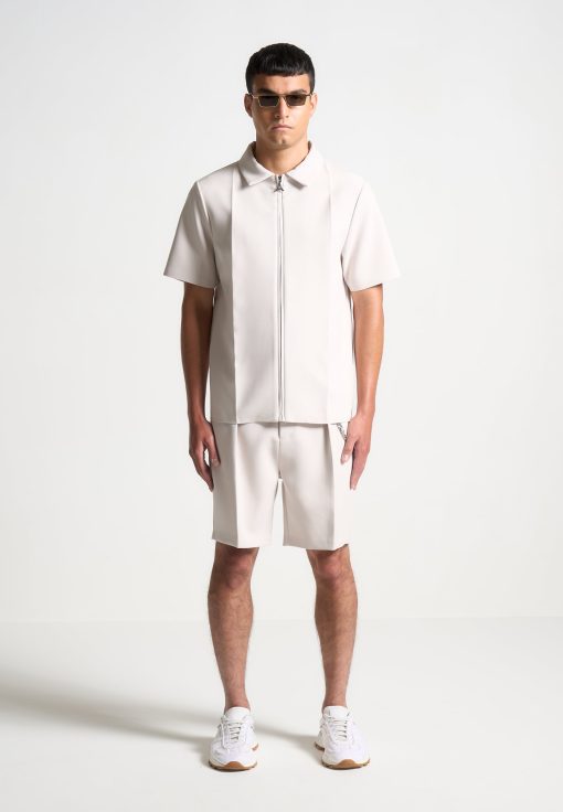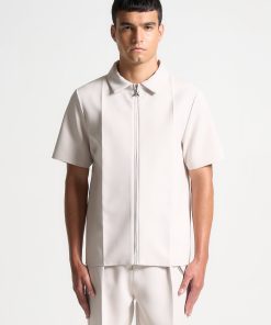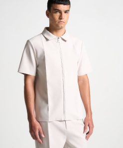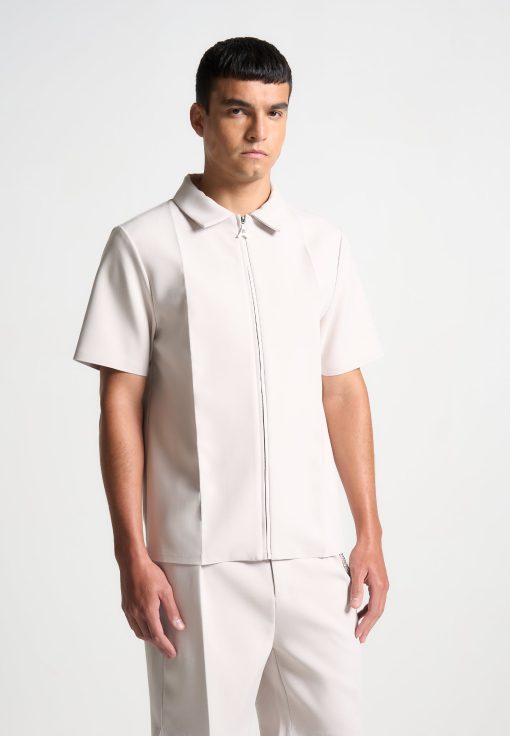 Introducing our Tailored Shirt in Stone, showcasing a discreet central zip and refined collared design for a sleek, polished appearance. Accentuated by the Silver Eiffel zip and subtle pleat detail, it exudes understated sophistication. Designed with a regular fit, this shirt effortlessly combines comfort and style.